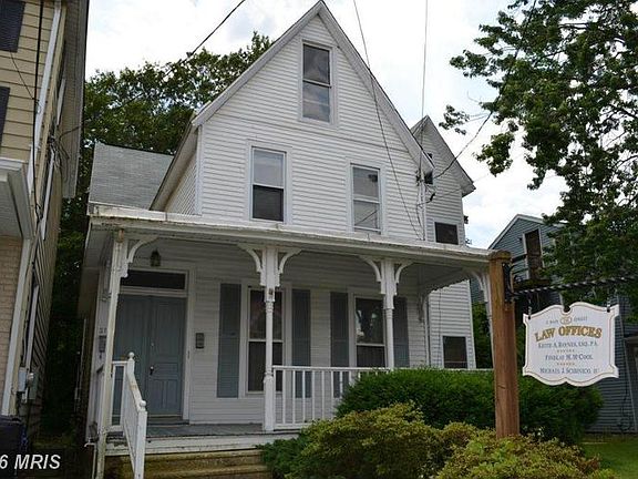 OPPORTUNITY KNOCKS!!! Established Law Firm Building within walking distance to Court Houses- Zoned RO- Residential Office- Five rooms for offices, Administrative Assistant office, Kitchen & Apartment Rental. Lots of Wood Flooring-Beautiful etched glass entry doors- One office & Apt. currently rented- Roof & some windows 2002. ROW from Main to Howard Streets also provides access to ample parking.