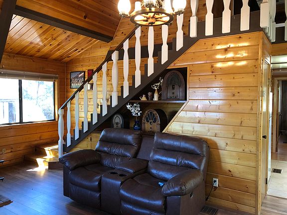 Looking for a cabin get-a-way but with the convenience of in-town? Look no further. Here it is. Knotty pine interior, wood burning fireplace and laminate wood floors. Main Living area 2nd floor. Look out the windows and see the tall trees on the property. Nicccce!Bonus! separate guest quarters/apartment ground floor. Total Bedrooms 4/ Total Baths 3 and 1 car garage with workshop area. Another bonus? Yes! This home sits on a wooded lot. Could be room for RV by adding a separate entrance to property. Home shows pride of ownership.