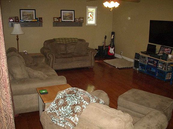 Super nice home in Elberfeld with updated wood flooring in spacious living room that features wood burning fireplace. Wood floors carried over into kitchen (comes with all appliances) updated counter tops, white painted cabinets some new cabinet space and newer faucet, dishwasher new this year, smooth top range and separate pantry/ mud room ( perfect spot to ad an extra bath if needed).Three bedrooms and full bath with tiled floors and updated vanity with linen closet. Privacy fenced back yard featuring small garden and covered patio, freshly painted storage shed, covered patio, vinyl sided house with easy maintenance plus a large 2.5 car garage with workshop space. All on corner lot. One year home warranty included. Roof new in 2006.