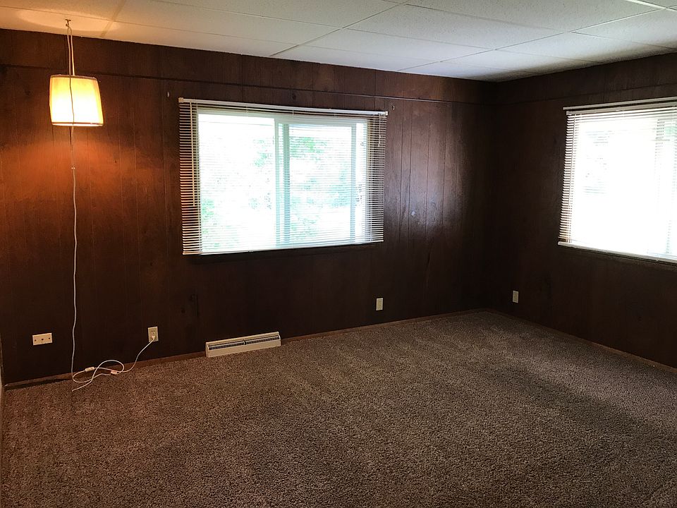 Just remodeled two bedroom apartment is now available. New flooring, and counter tops, and new windows. Very cozy apartment with a three seasons screened porch that adds to the ample living space. Included in the monthly rent are; HEAT, WATER, SEWER, AND TRASH. Located in a quiet neighborhood close to the schools. No pets allowed as the apartment has new flooring. Contact me to set up a showing and get an application. Owner pays for Heat, Water, Trash. Tenant is responsible for electric and cable and internet.