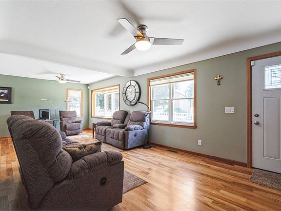 Welcome to this meticulously updated gem, transformed in 2015 with great attention to detail! From the moment you step inside, you'll appreciate the new cabinets, quartz countertops, and modern appliances in the kitchen. The main level features beautiful hardwood floors flowing seamlessly through the entry, dining, living, and kitchen areas. With two spacious bedrooms and an updated bathroom complete with a new vanity and tub/shower combo, comfort is assured. The convenience of a main level laundry room is a real bonus. Venture downstairs to discover a fantastic rec room, a large wet bar, and an updated 3/4 bath, plus plenty of storage space. Recent upgrades include new electrical, plumbing, steel roof, siding, windows, HVAC, light/plumbing fixtures. Outside, enjoy the big maintenance-free front porch, newer driveway, irrigation system, and a 36x22 three-car garage equipped with heat, AC, built-in cabinets, a refrigerator, and a freezer. Plus, a Generac generator ensures you're always prepared. Small town living, but close to the Iowa City & Cedar Rapids metro areas, this home truly has it all!