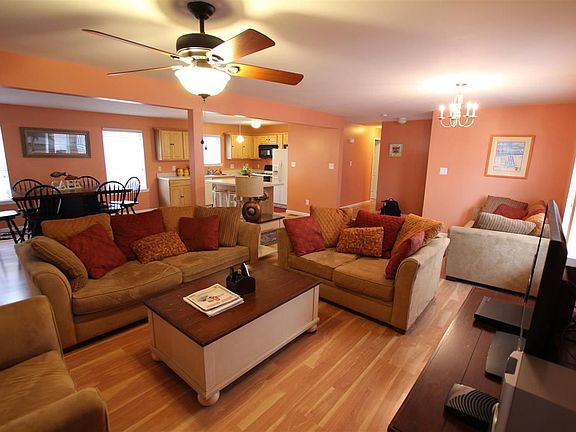 Truly a turn key beach property. This 4 bedroom 2 bath condominium is the first floor of a 2 unit building and is 2 blocks to the beach and boardwalk. Freshly painted this past week with pastels colors make the interior warm and relaxing. There is plenty of room to stretch out in the great room fit for a large family or entertaining, there is also a utility room with washer/dryer and utility sink. New laminate floors throughout with carpeting in bedrooms. This unit comes fully furnished including kitchenware . Attached garage with additional storage and an outside shower all within a short walk to the beach. Share of yearly insurance is $1923 per year including flood policy and HO6.