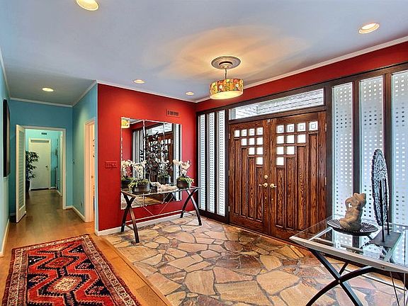 Modern mid-century masterpiece filled with custom design elements. Zen-like entry into huge 4400+ sq.ft. home. 20ft ceiling height in sunken living with dramatic stone wall. Fab retro kitchen with updated appliances, but a really vintage feel. Outstanding master suite opens to incredible outside deck. Family room, Sauna, RV hookup, gated parking, storage galore! Lush landscaped gardens.