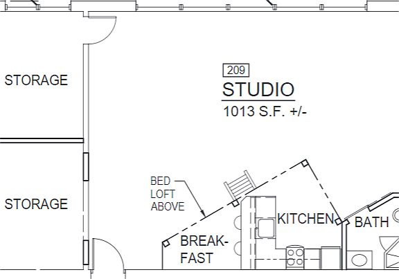 Unit 209 is a large live work studio featuring an open floor plan, stainless steel appliances, quartz countertops and a breakfast bar. Please note the renderings represent a "similar" unit. We are building a sustainable, live/work community for artists of all disciplines. We offer simple liv-ing in an environment supportive of creative pursuits through the sharing of resources and experiences. Our mission is to foster a culture of artistic excellence where artists can continue to grow personally and professionally with beautiful, historic Trinidad serv-ing as the backdrop.