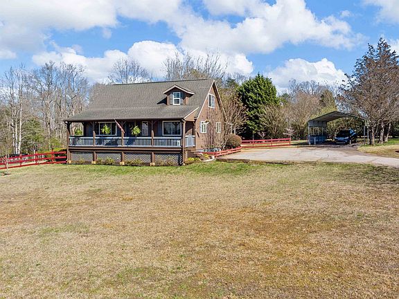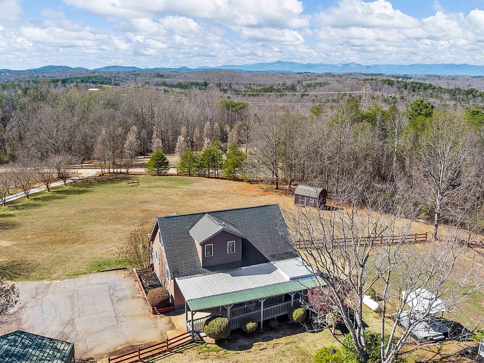 Welcome to 210 Elbert Court, where country living and convenience meet. Just 15 minutes from Greenville, Travelers Rest, and Easley, this quaint home is nestled on 2.5 acres featuring a covered back and front porch with stunning views of Table Rock and Caesers Head. Step inside to discover a warm and inviting atmosphere, with a spacious living area featuring exposed wooden beams, a vaulted wooden plank ceiling, and a stone fireplace. The spacious kitchen has ample counter and cabinet space with a gas range. This home also features a fully finished walk-out basement with a workshop. There is a master on the main level with a handicap accessible shower and a master on the second level including a jetted tub. The 2.5 acres of land feature a barn, two outbuildings, and a delightful above-ground pool, perfect for cooling off on warm summer days. Don't miss the opportunity to make this dream property your reality!