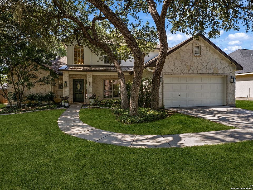 Welcome to 210 English Oaks Cir, a beautifully updated and newly renovated home in the heart of Boerne! This spacious 4-bedroom, 2.5-bath residence offers over 2,800 sq. ft. of stylish living with fresh interior and exterior paint, brand-new carpet, countertops, light fixtures, fans, hardware, plumbing fixtures, wallpapered accents, and a butcher block island. The inviting open layout features a bright kitchen with an expansive breakfast bar and plenty of storage, flowing seamlessly into the dining area and living room with a stone fireplace-perfect for entertaining. Large windows fill the home with natural light, while recent improvements such as a 2021 impact-resistant roof, new water heater with expansion tank, smart garage door opener, and Ring doorbell provide peace of mind. Enjoy a prime location within walking distance to Currington Elementary, the YMCA, skate park, and the future Boerne City Park splash pad, plus easy access to Main Street, shopping, dining, and I-10. Combining the charm of an established neighborhood with the convenience of like-new living, this move-in-ready home is a true Boerne gem!
