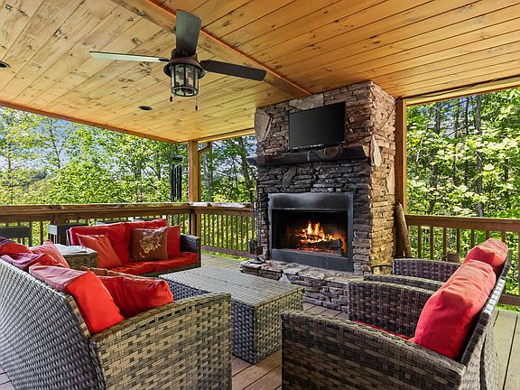 This 3-bedroom cabin in Morganton, GA, offers everything you need for an amazing vacation. Enjoy the expansive deck with stunning mountain views, a hot tub, outdoor patio with a fireplace and TV, outdoor dining, and a BBQ grill. Inside, you'll find a game room with arcade games, ping pong, and a foosball table, a fully stocked kitchen, an indoor fireplace, TVs in each bedroom, board games, corn hole, a dedicated workspace, and parking for 3 cars. Tucked away in the heart of the North Georgia mountains, this 3-bedroom, 3-bathroom retreat offers comfort, style, and serenity for up to 10 guests. The cabin-style home combines rustic charm with modern amenities, featuring expansive decks, cozy interiors, and stunning natural surroundings. The main spaces include three bedrooms with king-sized beds, smart TVs, and direct balcony access, a chef's kitchen with high-end appliances, a living room with a 48" smart TV and indoor fireplace, and a game room with arcade games and a lounging area. Up to 2 dogs are allowed for $125 per stay, but no cats please. Parking is available in the driveway for 3 cars. Nearby attractions include Tank Town USA, Morganton Point Recreation Area, Project Chimps, Hooves and Feathers Petting Farm, Blue Ridge Scenic Railway, and Serenberry Vineyards. Dining options include Cucina Rustica, La Pizzeria at Cucina Rustica, Nomad Market of Morganton, Boat Dock Bar & Grill, and Mike's Trackside BBQ. Check-in is at 4pm and check-out is at 10am. No parties are allowed, and violations may result in immediate termination of the stay. Guests must be 21 years or older to book this property. A simple screening process is required within 48 hours of booking confirmation, and guests will be asked to sign a Rental Agreement before check-in. A non-refundable $55 damage waiver is required, covering accidental damage during your stay, provided it is reported before check-out.
