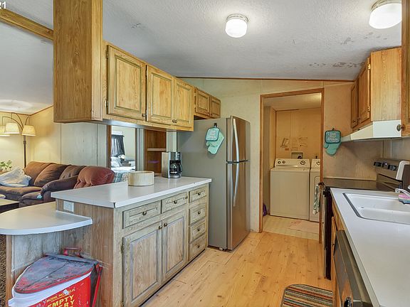 Cute 3 bed / 2 bath manufactured home in Evergreen Estates. Large fenced yard, raised garden beds and covered deck. Vaulted ceilings in living area. Huge corner lot, Gardner's delight.