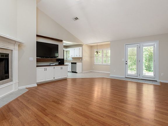 Three bedroom 2 bath home is nicely situated on tree lined one acre lot. Home features a spacious great room with soaring cathedral ceilings. Kitchen is open to the great room and dining area and both have plantation shutters. Master suite has a huge bedroom with large window and features a four-piece en-suite bathroom. Two additional bedrooms share a bathroom. Separate laundry room. Large patio has beautiful views of a large back yard that backs up to trees.