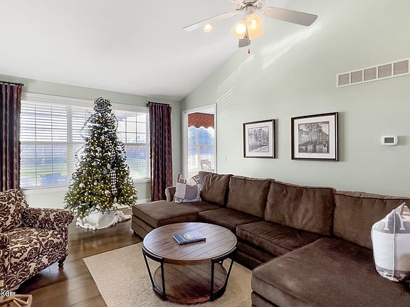Look no further than 210 Evergreen Garden Drive! This fantastic ranch looks like a model home and is in move-in condition. Beautiful hardwood flooring greets you as you enter the home and continue throughout the the main level! The great room is open to the eat-in kitchen making entertaining easy and fun. The kitchen offers granite counter tops and an abundance of cabinet and counter space, stainless steel appliances, gorgeous backsplash and access to the laundry room that leads to the 2.5 car garage. Enjoy the views of the gorgeous park like backyard from the dining area, great-room, primary bedroom and expansive back patio. The split floor plan of this home offers plenty of privacy as well. Escape from a long day in the primary suite complete with trayed ceiling and an en-suite primary bathroom that offers dual vanities, soaking tub, separate shower and sizable walk-in closet complete with custom shelving. Two additional bedrooms are found on the main level along with a full bathroom. More wonderful features await you in the finished basement featuring a second family room, media room with surround sound, workout space, bedroom and an additional full bathroom. Don't worry...You still have plenty of storage space in the unfinished area of the basement. You will not want to miss out on this quality construction, maintenance free home. Schedule your appointment of 210 Evergreen Garden Drive today!