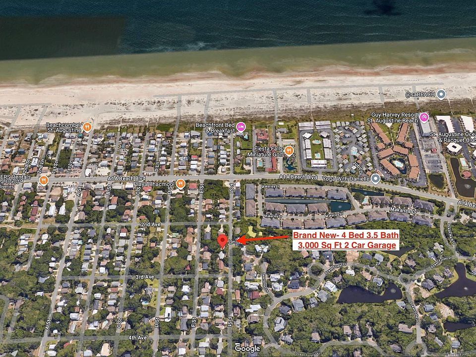 This stunning brand new construction 4-bedroom, 3.5-bathroom home combines modern elegance with comfortable living. With an open floor plan perfect for entertaining, you'll enjoy a spacious flow between the gourmet kitchen, dining area, and inviting family room. High ceilings, ample natural light, and top-notch finishes add to the luxury feel. A two-car garage offers convenience, with extra storage options for all your beach toys and equipment. The outdoor space is perfect for relaxing evenings or hosting friends, with a patio that seamlessly extends the living space. Upstairs. you will find the primary suite, offering a peaceful retreat with an en-suite bathroom featuring dual sinks, large walk in shower and dual walk-in closets. There are two additional bedrooms upstairs with a jack and jill bathroom. Plus an extra family room/den upstairs, perfect for family use! Downstairs you will find an additional primary bedroom with ensuite full bathroom and walk in shower. Laundry room and half bathroom are situated downstairs for convenient daily use. This home sits on a generous lot, offering endless possibilities for outdoor living and entertainment. With ample room for a pool, this property is a rare find that allows you to create your own backyard oasis, all with walking distance to the beach! 210 F Street is centrally located along the golden mile of St. Augustine Beach--close to beach restaurants, the St Augustine Pier and a quick 10 minute drive to downtown St. Augustine!
