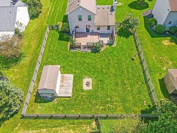 Welcome to this beautifully updated 3-bedroom, 2.5-bath home in Pataskala's sought-after Settlement neighborhood, located within the Southwest Licking School District. Situated on a .26-acre lot with a fully fenced backyard, this move-in ready gem offers the perfect blend of comfort, character, and space for entertaining. Step inside to a welcoming family room with cathedral ceilings and a cozy wood-burning fireplace framed by an antique wood mantel. The bright, modern kitchen boasts high-gloss soft-close cabinetry, quartz countertops, a stylish tile backsplash, deep farmhouse sink, stainless steel appliances, center island, and an eat-in dining area. The entry-level half bath features custom wainscoting accents, adding a touch of charm. Upstairs, the spacious primary suite includes an updated en-suite bath and a walk-in closet. Two additional bedrooms and a full hall bath complete the second level—plus, Bedroom #3 includes laundry hookups for a convenient second-floor laundry option. The partially finished basement provides extra living space, perfect for a rec room, media space, or home gym, along with a bonus room ideal for a workshop or additional storage. The attached 2-car garage includes a handy workbench area. Enjoy outdoor living on the double-tier deck overlooking the backyard, complete with a firepit and a 10' x 16' storage shed. Recent updates include: fully renovated kitchen, new modern lighting fixtures, fresh interior paint, new A/C (Sept 2023), new water heater (Oct 2024). Extras: Seller is including lawn treatments through the end of 2025, plus a home warranty for added peace of mind.