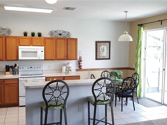 This property is set back in a quiet neighborhood, offering one of the most sought after features, green space and privacy beyond the pool. The combination front living and dining room is huge and the back combination kitchen and family room is too. Step out to the larger than average pool and spa to see and feel the peacefulness it offers. Additional nice features are the two master bedroom suites with their own bathrooms. Furnishings, housewares and appliances are all included in the sale, perfect for a vacation, second home or first time home buyer. You've found a great property in a great location, close to shopping, restaurants and golf at Champions Gate. I-4 and Posner Park are within minutes. Easy to see, you're invited!