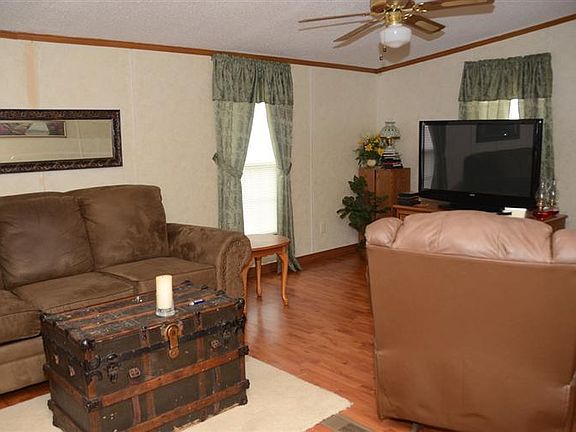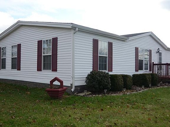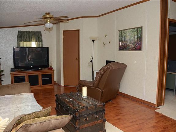 Conveniently located just 15 minutes from I-75! Ranch floor plan with 28x12 LR; New flooring throughout; kitchen appliances included; 5 acres; active well on property; city water; 50x32 custom detached 3 car garage; 2BR-2BA; newer roof, siding, skirting.