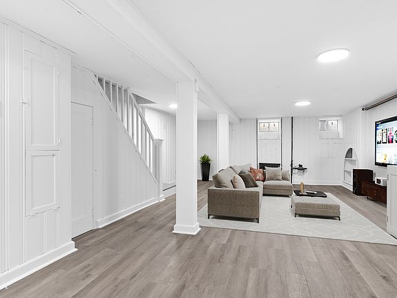 Be the first to live in this newly restored 2 family townhome, currently setup as a 2 bed, 2 bath duplex with finished basement rec room or flex space and a gigantic backyard. The park like yard features a pergola and beautiful old trees overhead and is what summer dreams are made of! (Fence between the neighbor's backyard will be installed soon) As you enter the open concept living space you will notice the home has been restored with love and care. The all white kitchen is outfitted with new cabinets with soft close doors and drawers and designer wood pulls and the 2nd level of cabinets takes advantage of the high ceilings giving you extra storage space. The kitchen/dining/living room has ample space for you put your own touches on it with a kitchen island, extra shelving and a dining room table which you can illuminate with the adjustable kitchen pendant installed by the owner! Towards the front of the house is the extra large primary bedroom with 2 large windows. In the back of the house is the 1st full bathroom that has been lovingly restored and updated with a designer concrete floor. Off the kitchen is the smaller 2nd bedroom which also has a glass door leading out to the enormous backyard. From the living room, walk down the steps into the newly refinished basement spanning the entire length of the house. Perfect for many different uses, this level has it's own full bathroom and a brand new washer, dryer and sink. There are smaller windows in the front, a glass door that exits to the rear and several closets cleverly hidden below the stairs for storage. The front door of the house has been outfitted with a smart intercom system that links directly to your phone and there are security cameras in the entryway to help keep your package deliveries safe. A professional management and maintenance company will make sure things run smoothly and the building is kept clean. Frost street is quiet, with little car traffic and alternate side parking is only once a week! You are just a short walk to all the shops and restaurants including Cozy Royal, the Meat Hook, the Richardson, 456 and Daytime as well as both McCarren and McGolrick parks. Third party guarantor accepted on a case by case basis with The Guarantors. $20 credit check fee and $10 background check fee per applicant.