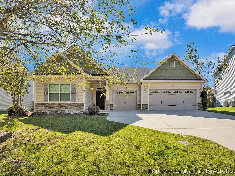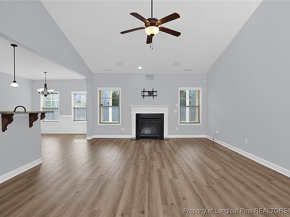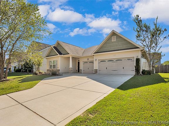 Beautiful 3-bedroom, 2-bath home featuring an open floor plan with a spacious great room filled with natural light. The kitchen overlooks the living area and includes granite countertops, stainless steel appliances, and plenty of cabinet and counter space. The primary suite offers a double vanity, garden tub, and separate shower. Enjoy a nice size yard with a covered back porch & firepit, perfect for relaxing or entertaining. Located in the family friendly Turnberry community, which offers a park, walking trail, playground, soccer field, and grills. Conveniently close to Fort Bragg, shopping centers and hospitals. Pets allowed up to 50 lbs. with a non refundable one time $300 pet fee.