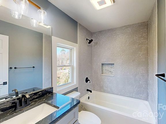Upstairs is a 3/2.5 and downstairs is a separate MIL suite of 1BR 1BA. Built for multigenerational living but MIL can also be a long-term rental. STR is no longer allowed in Woodfin but LTR is OK (buyer to verify). Sophisticated color schemes fit many choices. LVT flooring and ceramic tile throughout. Bluetooth bath fans. Good-sized lots have outside play area ("Asheville flat"). Housing is Arts & Crafts style, very popular. Ultimate open floor plan on main and MIL levels. 5 minutes to downtown or the Merrimon Ave retail corridor. very close to Silverline Park and coming whitewater area. For rental purposes, the house would rent for about $2400 and the MIL for $1400 or so (buyer to verify.) Lots of occupancy opportunities for this one. 1) Owner up, rental of MIL 2) Rental of both house and MIL 3) Owner in MIL, rental of house to pay most of mortgage. 4) Owner up, teen suite or office in MIL.