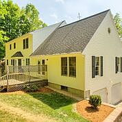 Oversized executive cape in beautiful setting! Relax and enjoy the peaceful surroundings on the Farmers Porch, or the large deck in back, on a private lot. Custom walkways and walls add to the great curb appeal of this home. Inside you will find spacious rooms with plenty of room to move about - great for entertaining! Large family room has direct access to the deck and cathedral ceiling with a loft/sitting area. Large workable eat-in kitchen with deck access, full bath, dining room, living room and office complete the open first floor. 2nd floor features master suite with full bath and walk-in closet, 2 more large bedrooms, loft area, and 3rd full bath. Lots of windows throughout plus lots of closets and storage. Great floor plan, was originally builders home. Good commuter location.