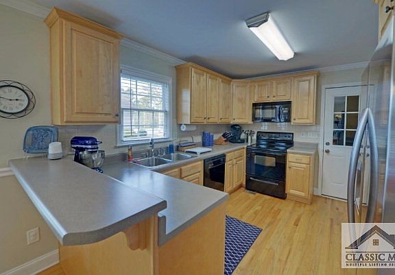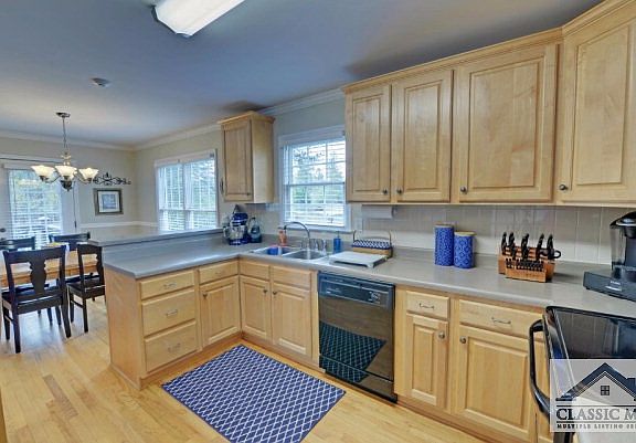 Beauty, Warmth and Value in this 3 BR, 2 BA charmer and only 5 minutes from the new Super Kroger Shopping Center . It is also convenient to Athens Tech, Shopping, Restaurants and UGA. House has lovely hardwood floors in Foyer, Kitchen and Dining Room. Tile floors in Bathrooms. Enter from the covered front porch through front door which features a beautiful decorative glass door and side lights. The popular open floor plan includes a Great Room with vaulted ceiling, fireplace and back door to the deck. The efficient kitchen includes all appliances, pantry and Breakfast Bar. The Dining Room is included in the open plan which allows for versatile use. The Master Suite includes a walk-in closet , a Master bath with double vanity, soaking tub , separate shower and vaulted ceiling. The bedroom has a tray ceiling and great natural light. The house exudes happiness but wait until you see the wonderful back yard. The park-like setting has a trellis with a family swing that invites you to sit and enjoy the view . It also has a aerated fish pond and beds of plants and flowers.
