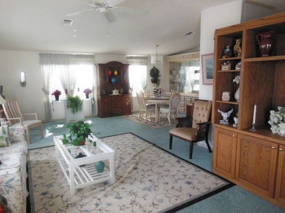 MUST SELL! Bring Offer! ... This home is located in The Hamptons, a 55+ gated retirement community in Auburndale, Florida. Homes are on lot leased Land. The monthly lot fee for this home is $919.00. The lot fee does include garbage pick up and pass through land tax. This great home is a 2/2 with golf course view of #1 Green and Fairway. Notice first the accomodating double driveway and concrete curbing accenting the lovely landscaping. A step inside the front door brings you to an open floor plan that includes a living room, dining AND a den. Storage was designed into the home with a built-in hutch in the dining room, shelving and a wet bar in the den, and lots of cabinets and an island/breakfast bar in the kitchen. You will also find 3 walk-in closets in this home, two of them being in the master suite, which is spacious. The master bath has double sinks, shower and soaking tub. The guest bedroom also has an adjoining bathroom. Your over-night guests will love that! The sun room is HUGE (20 X 22) and is in addition to the 1,700 square feet of living space. This can definitely be an entertaining home. This home is sold unfurnished, but all appliances and the golf cart stay with the home. Please call today to make an appointment for a personal tour.