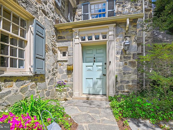 Quintessential stone English Cotswold style house gets an A+ for curb appeal located on one of Homelands most beautiful streets.  Architectural details will impress you from the front door bottle glass transom to the built- in sun dial on the front exterior. The charm continues inside with random width pegged wide plank hardwood floors throughout. The original architectural details have been complemented by a very tastefully done renovation. The gourmet kitchen is stunning with custom cabinetry, white quartz counters, a 6-burner commercial grade gas range with a pot filler, subway tile backsplash, wet bar with wine fridge and a large island. The kitchen-dining area opens to the living room. The oversized stone Fireplace is the focal point of the large living room.  The side sunroom is a magical space for a toy room, an office, or a sitting room. The primary bedroom ensuite bathroom has been renovated to include a large shower and custom cabinetry. Walk-in closet and additional built-ins add plenty of closet space for today's buyers. 2 additional large bedrooms with generous closets and built-in California closet systems. These rooms share a Jack and Jill bath also tastefully updated. Floor 3 has 2 additional bedrooms and an updated full bath offering space for guests or family or privacy for an au pair. The finished lower level has a recreation room with easy care luxury vinyl flooring, a half bath and more storage. The kitchen renovation includes a mudroom that exits to a stone patio and a fenced-in yard. Functional stone Garage offers yet more storage and space for 1 large or 2 small cars. An architectural gem in the desirable Homeland location, convenient to Baltimore's most sought-after schools, restaurants, shopping, transportation, and easy commute to downtown.