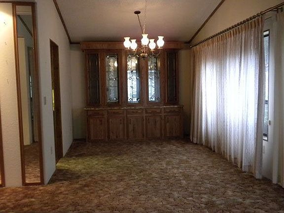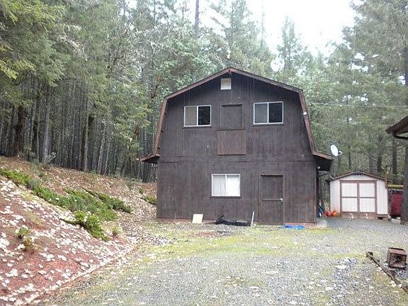 1984 Goldenwest double wide manuf hm on 5.24 wooded ac, Large loft in barn shaped 2 + car garage. 1782 sq ft, 2 bedrooms, 2 full baths, oversized master bedroom, soaking tub, walk-in closet, LR, DR & family room with entertainment center & cozy Kent, wood stove. Heat pump. Kitchen with lazy susan, 2 wall ovens, DW & breakfast bar, laundry tub in utility room. Covered front deck. Privacy. Seasonal Pond. Good well per watermaster s log. Deeded Rogue River access, 2 miles to Robertson Bridge Boat ramp.