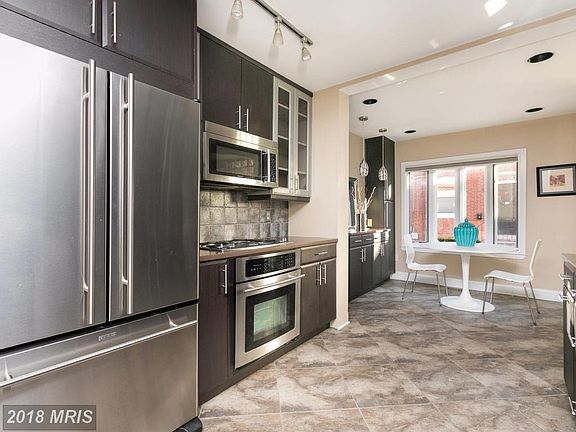 Reduced! This fabulous light filled end unit features a stunning kitchen, formal DR, LR with working fireplace and huge finished basement with a wet bar! Generous size bedrooms including a master BR w/private bath, double vanities, jacuzzi tub and walk in closet. Lovely outdoor patio space is perfect for entertaining plus enjoy Grindall Park right next door. 1 assigned prk spot included!