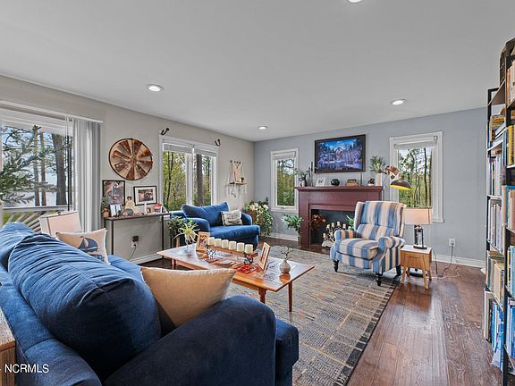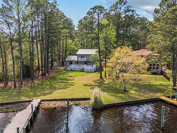 Motivated seller! Look no further for a direct waterfront home with a private boat dock. This home is located on Plantation Canal with panoramic views at the junction with the Trent River, gateway to the Neuse River and the intercoastal waterway. The beautiful four bedroom, three bath home also has a flex room, and a double garage with attic, under a metal roof. Some of the many home features include stainless steel appliances, with dishwasher, garbage disposal, and kitchen reverse osmosis water system. There is a large main floor deck with an external enclosed fire pit and a smaller upper deck off the master bedroom. The home is at the end of a long lighted driveway, on over three acres of private land. The City of River Bend includes a golf course with clubhouse, a dog park, playgrounds, skateboard and volleyball parks, and a fitness trail, with no HOA fees. Call today to schedule a private tour of this exceptional home.