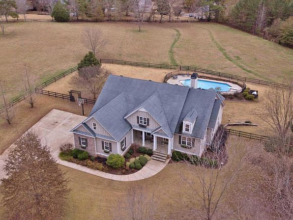 Amazing craftsman style home! Come see this beautiful property! Tons of custom details! Hardwoods throughout. Granite counters & custom cabinets in kitchen w/ship-lap ceilings. Double oven & SS appliances. Covered porch off kitchen overlooks expansive property. Master on main w/sitting room & huge double vanity master bath. 2 additional brd on main w/jack-jill bath. Bonus/Bdr upstairs w/attached bath & closet. Laundry chute. Huge basement w/another bdr w/attached bath & closet, home gym area, entertaining space, kitchenette, work space, storm/safe room. Salt water pool & koi pond. 10 beautiful acres w/3 stall horse barn & tack room. 3 pastures & riding arena. Spacious workshop & chicken coop. 4board farm fence makes this peaceful property extra private.
