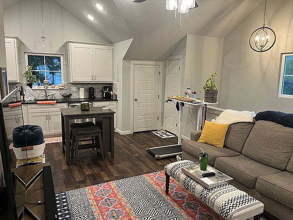 New construction (less than 3 years) 2nd story garage apartment. Bedroom, bath (shower/tub combo) full kitchen (fridge, dishwasher, and stove) and living space. In unit washer/dryer. Vaulted ceilings, lots of storage, tile bathroom, granite countertops, vinyl flooring throughout. Quiet neighborhood, steps from Gathering Place and bike trails. Well lit for safety, and privacy. Apartment is unfurnished. Rent $1100 monthly with fixed utilities at $150 monthly for total $1250 per month. Apartment is currently occupied and am asking for an application prior to showing the apartment, to minimize disruption to current tenant. Available June 1st, 2025 All utilities included in $150 utility fee. No smoking Street parking