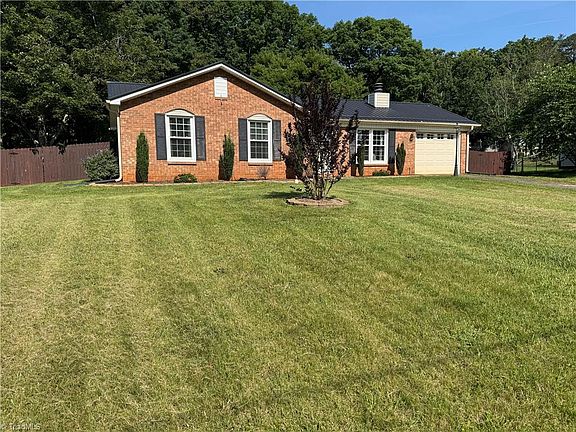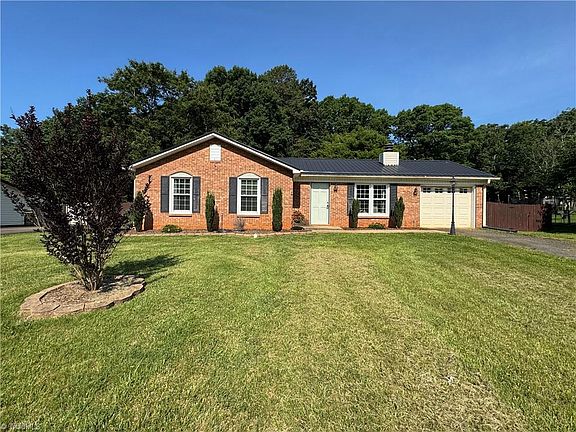 Gorgeous Brick ranch w/tons updates throughout in past few years! New metal roof, heat pump, laminate hardwood floors, tile floors, stainless appliances, granite counter tops, beautiful tile and stone walk-in shower! This is a must see! 3 Bedrooms, great closets, shiplap walls, no steps, all one level living! Beautiful open floor plan w/large Livingroom w/fireplace, Formal Dining, Kitchen w/granite counter tops, pantry, stainless appliances and more! Large laundry room, 1 car garage, fenced back yard. Door off dining leading to large patio overlooking beautiful yard, that is very private!! Call today for more info!!