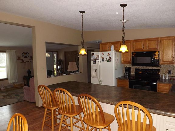 Well maintained ranch home situated on 9.65 acres. This home has an open floor plan with main level master suit and laundry. The kitchen is open to the living room and dinning room with a large deck overlooking the park like yard. The walk-out lower level would make a great inlaws quarters with its own kitchen, family room, bedroom + additional 5th non conforming bedroom and 3 seasons room. The outbuilding is currently used as a woodworking shop but could be a shop/one car garage