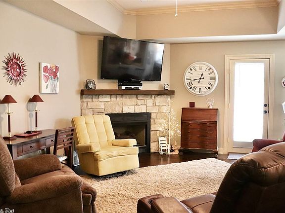 Beautiful home in Craftsbury Village in Bono! 3 bed, 2 bath with 2 car garage. Covered patio, grilling slab, gas log fireplace, solid surface counter tops, brick exterior, electric fireplace in master bath remains. Wood & acid stain floors, no carpet! Nice yard & well landscaped!