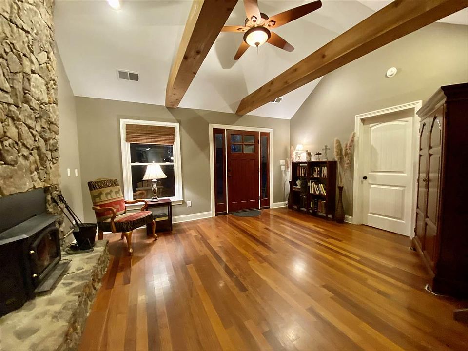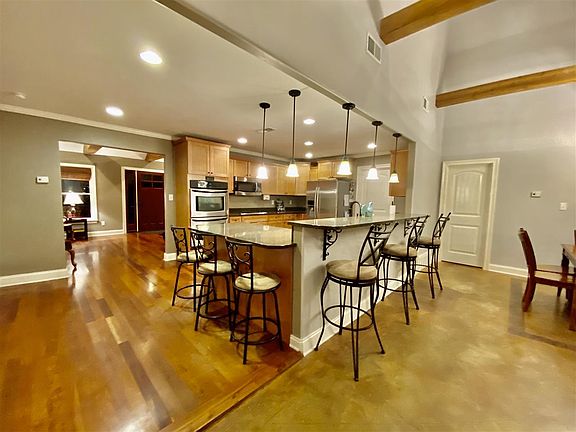 Contract fell through after 3 long months, all inspections, appraisal & ready to close. Stone, Cedar Beams & Wood Burning FP in the keeping rm from the front porch. Hardwood Floors Run from the Split Bedroom Floor Plan into the Kitchen then Transition into Scored Stained Concrete Floors. Great Room w/Tall Ceilings, Cedar Beams & 2 Iron Balcony Barn Wood Door Openings. 2 Masters. 3RD BD w/Full BA. Spacious Open Kitchen w/Gas Cooktop, DBL Ovens, Pantry. Large Laundry RM w/Granite Sink & Back Door.
