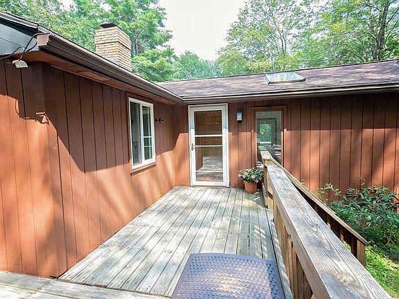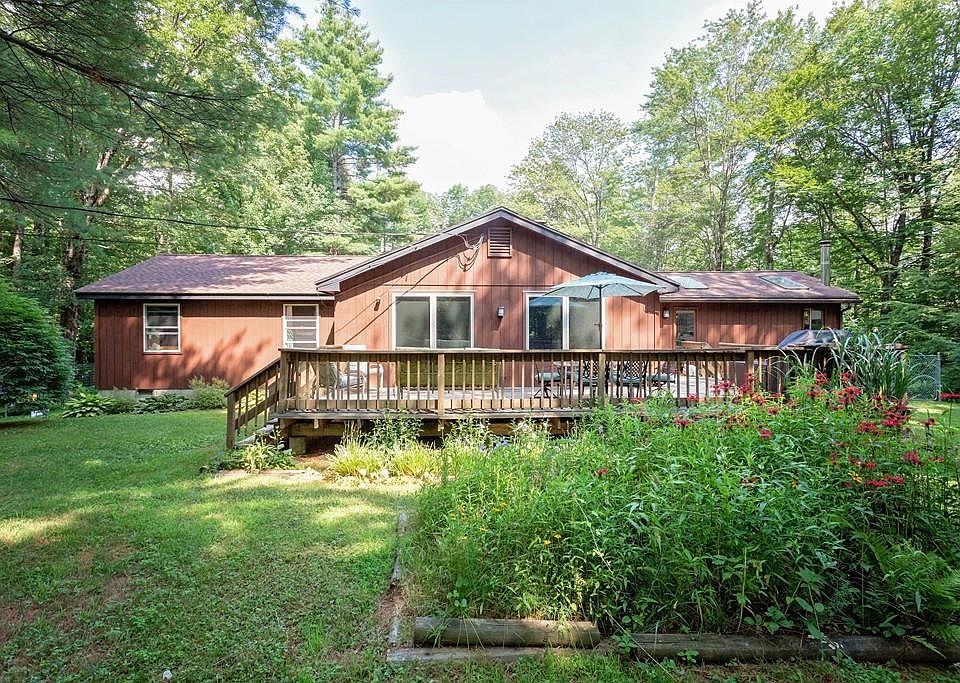 Just like NEW!!! This unique and beautifully redesigned and renovated ranch home will amaze you! Each room has been reconfigured to maximize space, light, and flow. Enter into a warm and welcoming open concept living/dining room that connects to the kitchen with new appliances and plenty of room to cook and entertain. Through the barn door is a spacious family room with high ceilings, a huge picture window, and a cozy woodstove. Adjoining is a half bath with laundry and an office/guest room. You will also find a brand new oasis of a master ensuite, where you can relax with the views and sounds of nature! Three additional bedrooms and a full bath offer privacy in a separate wing of the house. Outside you'll find 2 large decks overlooking the beautiful gardens and fenced yard with shed and new raised beds. Don't forget the heated garage with workspace and storage. Additional features include an economical pellet furnace and water softener.All this just minutes from the Chesterfield Gorge