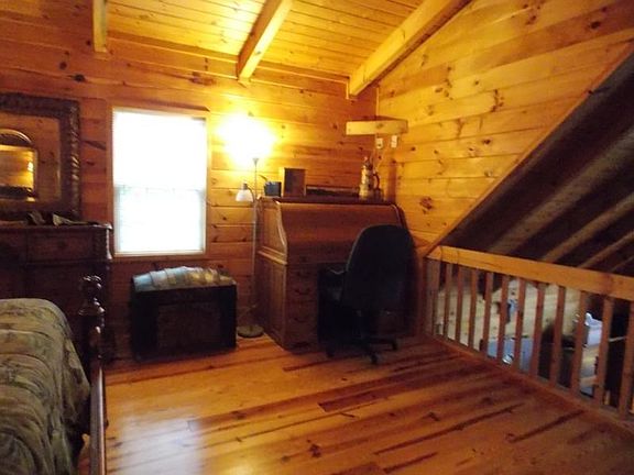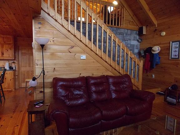 Lovely log cabin in the mountains. Private setting with mountain views. Large porch to relax and enjoy your home in the mountains. Gas log fireplace. Open floor plan. Small branch on property. Attached 1 car basement garage and huge 36 X 60 detached garage/workshop. Priced to sell at $239,900