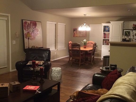 This is a quaint single family home with an open floorplan. It has beautiful laminate flooring and tile throughout with carpet in the guest bedrooms. The kitchen overlooks the family room with a center island and lots of cabinet space.