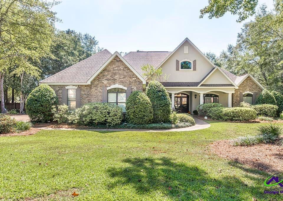 Exquisite 5BR/3BA custom residence on nearly an acre corner lot. Designed with timeless elegance, this home showcases two inviting living areas, each with its own fireplace, stunning stamped concrete floors, and custom built-ins. A chef-inspired kitchen offers abundant cabinetry, while the screened porch provides a serene retreat for year-round enjoyment. Possibly overshadowing all of the wonderful features is the 182 Sqft master closet with custom shelving. This home will take your breath away!