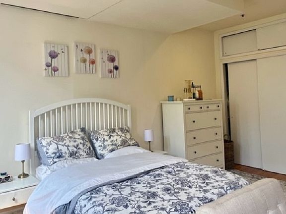 Parking Included in this oversized studio with a large wall of windows! Walk into a nice size kitchen that is open yet private to the main space of the home. The main room is a box layout which is large and can accommodate separate space for bed area, dining area and living. Good closest and nice bathroom. W/D in the building, elevator and common roof deck for lounging . Great downtown location, close to path, park, restaurants, and light rail. NO PETS