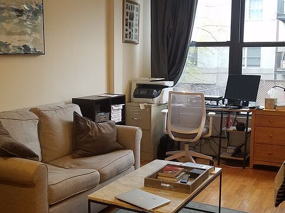 Parking included in this lovely studio in great elevator building. A good home with great light flooding in. Open kitchen with breakfast bar. W/D in the building and common roof terrace. Great downtown location.