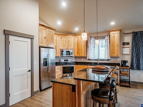 Unique multi-generational home featuring vaulted ceilings, hickory cabinets, granite counters, gas fireplace, lifetime vinyl plank flooring, gas heat, central AC, oversized covered deck, views of the hop fields & fully fenced backyard on a spacious 12k sqft lot. Parking for RV, boat or extra guests during Oktoberfest. Wired for generator, 220 for RV hookup & plumbed for hot tub. With dual kitchens, living areas, laundry, bedrooms & bathrooms both upstairs & downstairs, this home is perfect for any family.