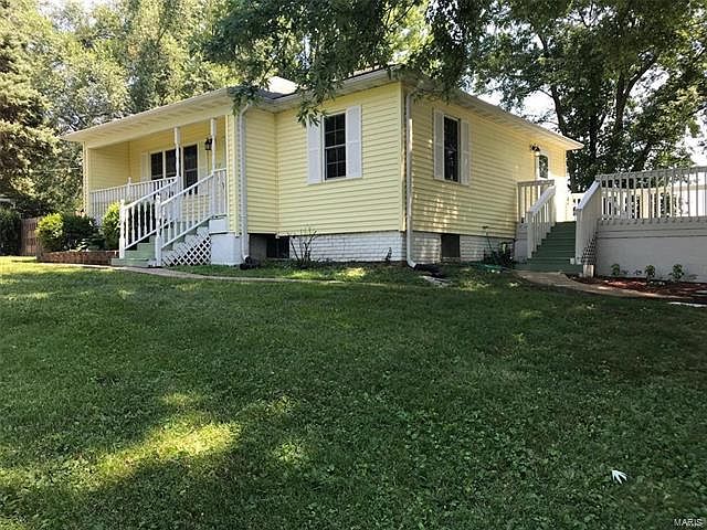 Home is positioned on a 1/2 ACRE LOT! Conveniently located but yet maintains privacy! Covered front porch. Large living room opens to dining room. Kitchen appliances (range/refrigerator) stay - Both bedrooms have built-ins are are separated by a full hall bathroom. LARGE LAUNDRY ROOM with extra storage closets - opens to covered patio/porch that overlooks the picket fenced back yard! WALK-OUT BASEMENT features a large family room (that could be used for 3rd bedroom) - 1/2 bathroom and a bonus room. Lots of unfinished space remains for storage. Walks out to one car carport. Large two-car detached garage .