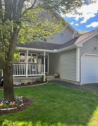 Westwood Condominiums is where you will find this meticulously maintained townhouse! The main level offers a spacious open floor plan with an eat-in kitchen, a beautiful newly updated bathroom with laundry, and a vast living room with sliders leading out to the deck overlooking a private backyard area. Head upstairs to find two generous bedrooms, ample closet space, and cathedral ceilings. The tastefully finished walkout basement adds more living space and plenty of storage room. This well-cared-for home has so much to offer. Plenty of natural light, front porch, sliders to balcony, central air, gas heat, 1st fl laundry, attached 1 car garage and so much more! Easy to show. Conveniently located. Schedule an appointment today.