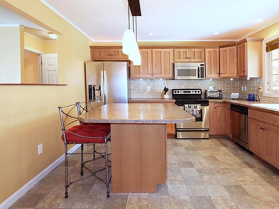 - Kit Dscrp: Flooring - Vinyl, Breakfast Bar / Nook, Recessed Lighting, Stainless Steel Appliances, Open Floor Plan, Exterior Access, Remodeled, Crown Molding