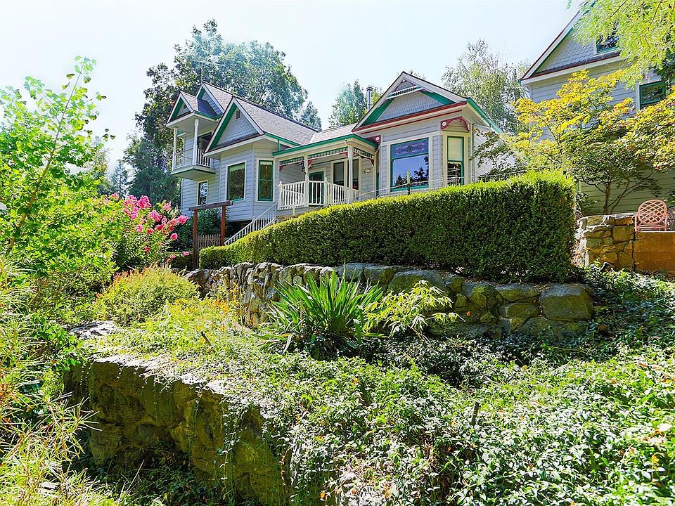 Restored & remodeled in-town Victorian located on Piety Hill. Elegant yet contemporary floor plan, with formal dining room, family room, and parlor room. Light and bright, including stained glass, 10 Foot Ceilings. 2 minutes to town situated on Tribulation Trail, Adjacent To Deer Creek. Terraced Gardens, rock walls, (Beautifully Landscaped), patios, porches and decks plus views of town and mountains. All this on a dead end street. A one-of-a kind property. Oversize 1 car garage with shop area. Plus huge attic space with potential for guest area.