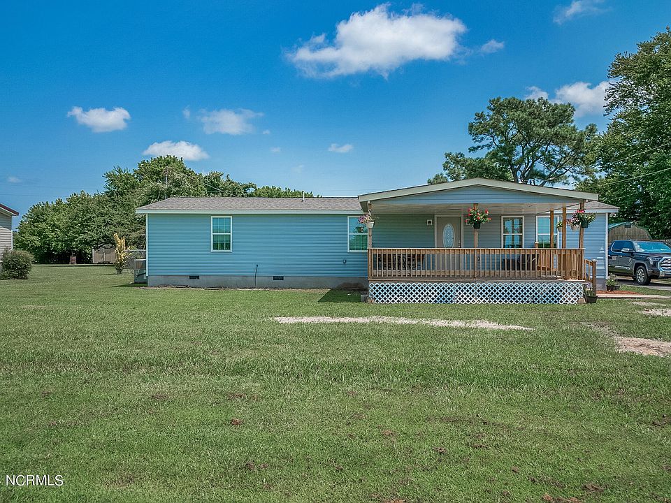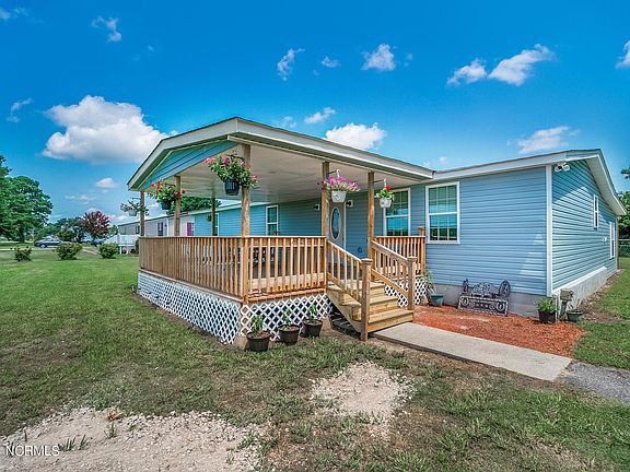 Nestled in the community of South Mills, NC, this beautifully updated home rests on a generous 0.49-acre lot. The recently remodeled kitchen is a chef's delight, boasting granite countertops, a stainless-steel farmhouse sink, and a premium stainless appliance package that includes a French door refrigerator. The home offers 3 spacious bedrooms and a versatile flex space with an attached bathroom, ideal for additional living space. The property also features a large laundry room, providing ample space for storage. Each of the 3 full bathrooms has been meticulously renovated with custom tile work, adding a touch of elegance. Outdoor living is a pleasure with a large covered front porch perfect for dining al fresco, and a relaxing back patio for enjoying coffee in the mornings! Originally built in 1976, this manufactured home has been added on to with a stick-built addition. Please note that this property is available for cash only, as it does not meet requirements for financing. There are no HUD data plates or VIN numbers.