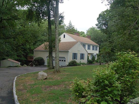 Elegant, 4 BR classic colonial located on picturesque designated Scenic Road. Many high end upgrades. Remodeled gourmet kitchen and baths. Generous sized rooms. Wood floors. Large front to back formal living room with fireplace and bow window. Dining room with custom built-in hutch. Dramatic floor to ceiling stone fireplace and built-ins in family room. Inviting sunroom overlooking beautifully landscaped and wooded property. In-ground pool, whole house generator, crown moldings, lots of storage. Walk out basement has a heat-a-lator fireplace. Award winning schools. Voted one of best towns in Connecticut to live in. Priced to sell.