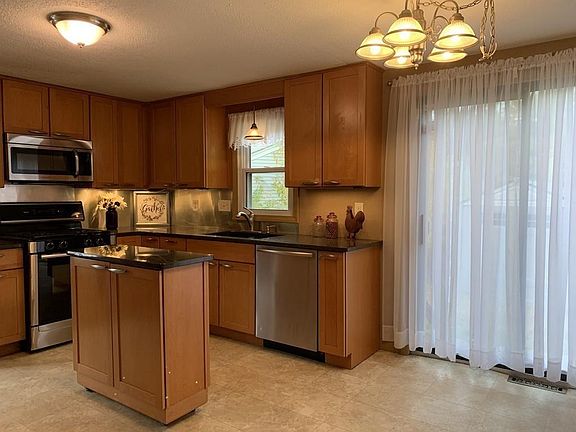 - Kit Dscrp: Flooring - Vinyl, Main Level, Dining Area, Cabinets - Upgraded, Kitchen Island, Stainless Steel Appliances, Remodeled, Slider, Exterior Access, Gas Stove, Lighting - Overhead