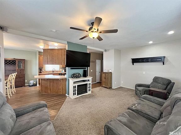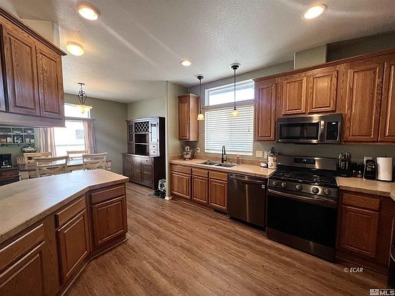 Located in a desirable neighborhood in Battle Mountain NV. Beautifully designed and full of charm from your first step on to the covered porch. 210 Kettle River Lane features a sun lit "great room" with vaulted ceiling, can lights and central ac. Enjoy handsome cabinetry in the kitchen with new matching appliances including a gas stove, attractive countertops with tile accent and a functional breakfast bar.