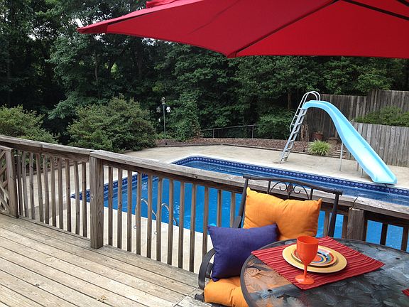 Super neat brick home with lots of updates on private cul-de-sac lot. Offers inground pool with new liner, fenced backyard, heat pump less than one yr old. Upstairs is finished for man cave or teen hang out. Stone FP with gas logs & gas grill on deck stays. Huge detached garage for boat/RV/truck etc. Also offers, 16x11 storage space under house with concrete floor. Beautiful mature trees offer shade for front & side of home.